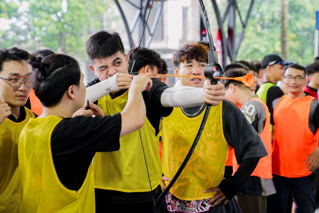 Khu vực team building đã mang đến hàng loạt trò chơi vận động, thử thách phối hợp nhóm đầy hào hứng. Những tiếng cười, những màn phối hợp ăn ý và tinh thần đồng đội đã tạo nên bầu không khí sôi nổi và kết nối mạnh mẽ giữa các thành viên.