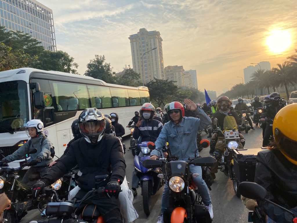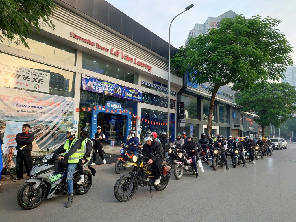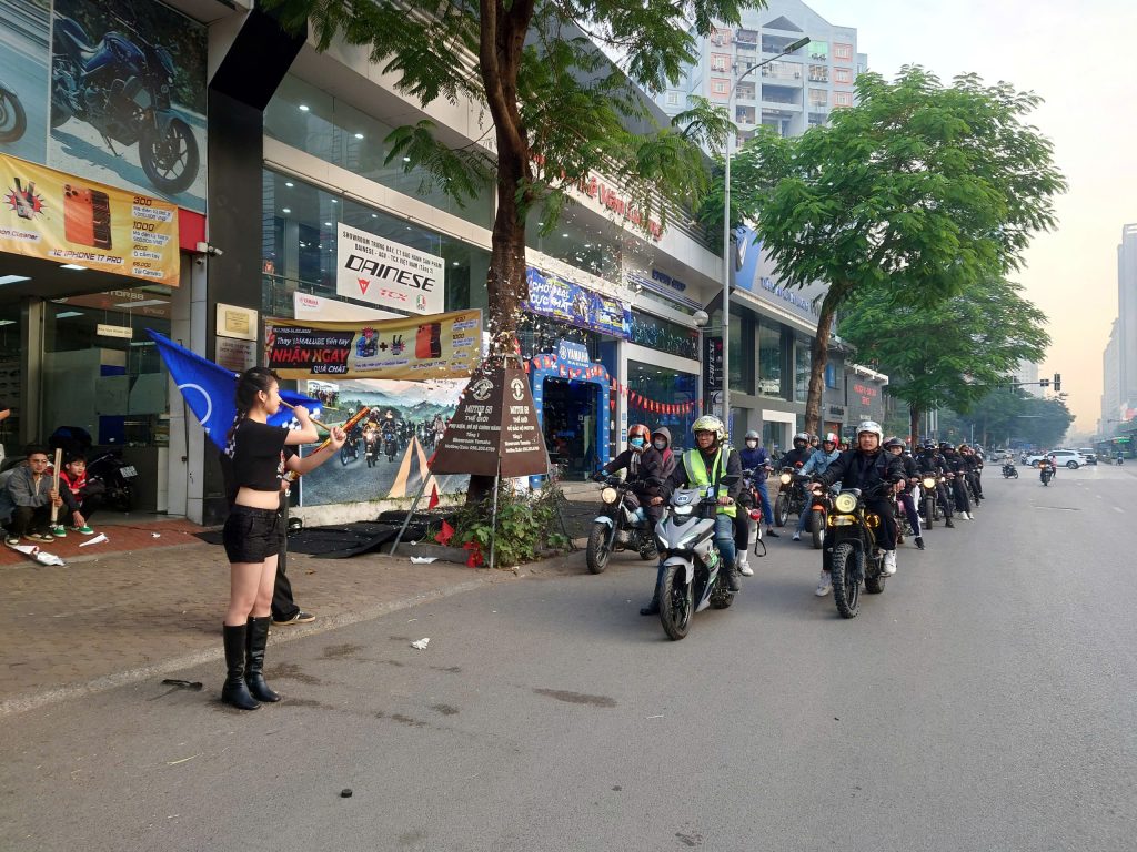 Từ sáng sớm, hàng trăm biker đã có mặt tại Yamaha Lê Văn Lương để check-in, nhận kỷ vật sự kiện và tham gia khởi động thể dục nhằm chuẩn bị cho hành trình. Đoàn xe PG-1 sau đó đồng loạt xuất phát, tạo nên một hình ảnh đầy ấn tượng khi nối đuôi nhau tiến về Asian Resort – Sơn Tây trong không khí náo nhiệt nhưng vẫn an toàn và trật tự.