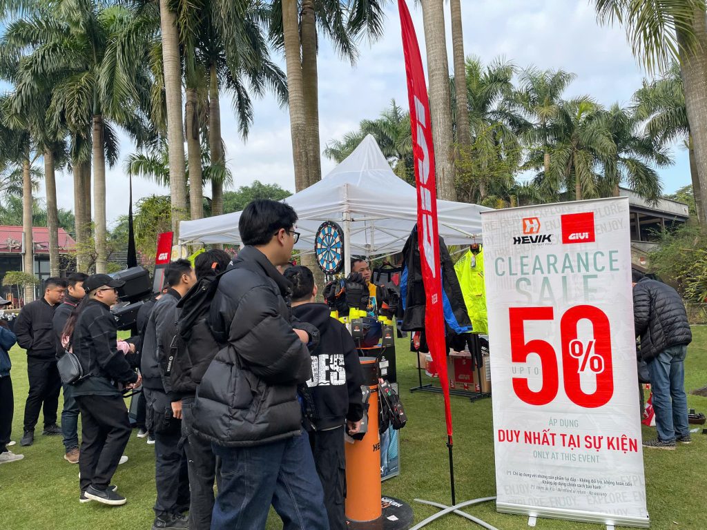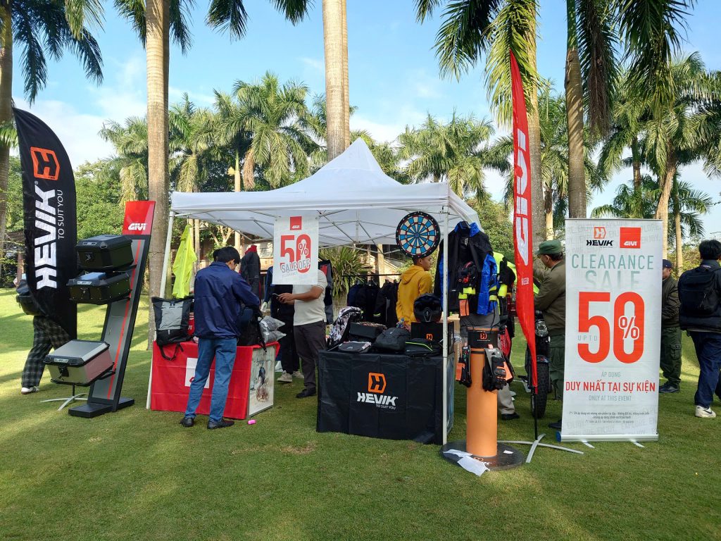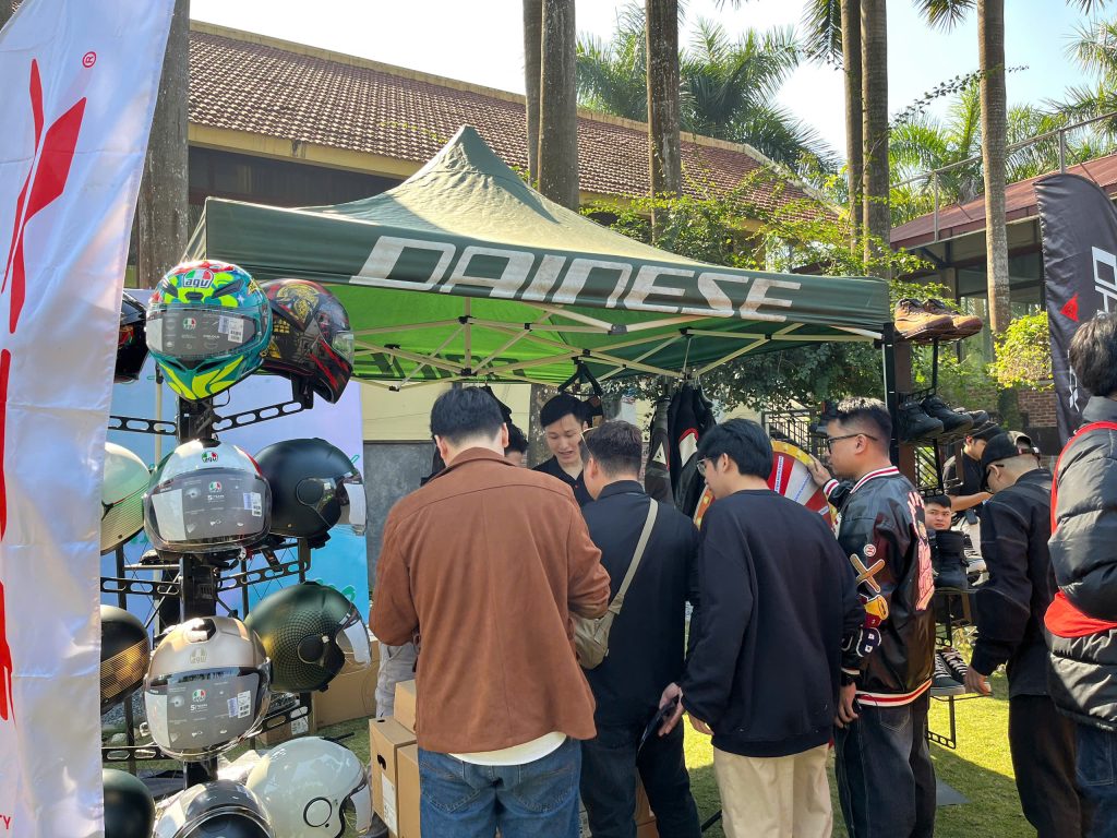 Sự kiện quy tụ nhiều gian hàng của các thương hiệu uy tín dành cho biker: DAINESE – AGV – TCX, HJC, GIVI – HEVIK,… Anh em được thoải mái trải nghiệm, mua sắm và nhận ưu đãi độc quyền ngay tại sự kiện.